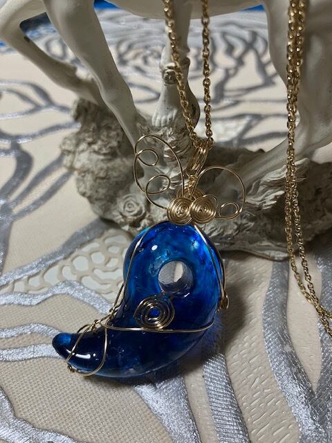 貴重な天然石勾玉を使用した、N-64 勾玉天使(藍)藍色の勾玉が合わさった美しいデザインは、どんなスタイルにもマッチし、存在感を放ちます。その美しさは言葉に尽くしがたいものがあります。